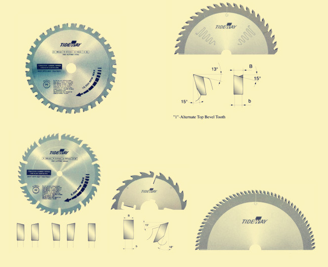 Pisau dirancang dengan bentuk gigi berbeda untuk memotong kayu lunak, kayu keras, bambu, MDF, laminasi board, plastik, tembaga, aluminium, PVC atau akrilik dan seterusnya.